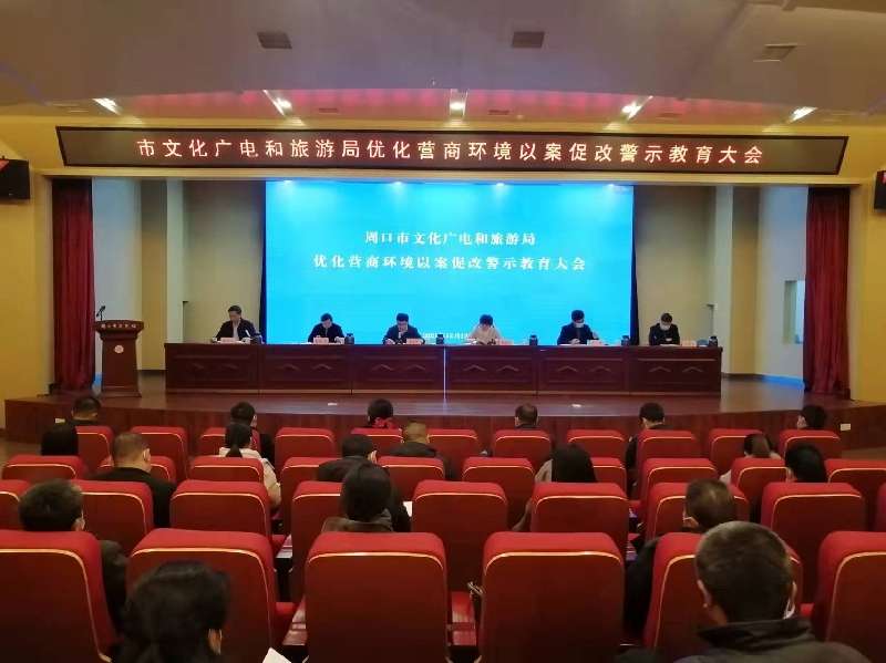 12月13日下午,周口市文广旅局召开优化营商环境以案促改警示教育大会。局党组书记、局长刘国庆出席会议并讲话。会议由市文广旅局党组成员、副局长韩丽霞主持。局班子全体成员、局属各科室及单位党员参加会议。